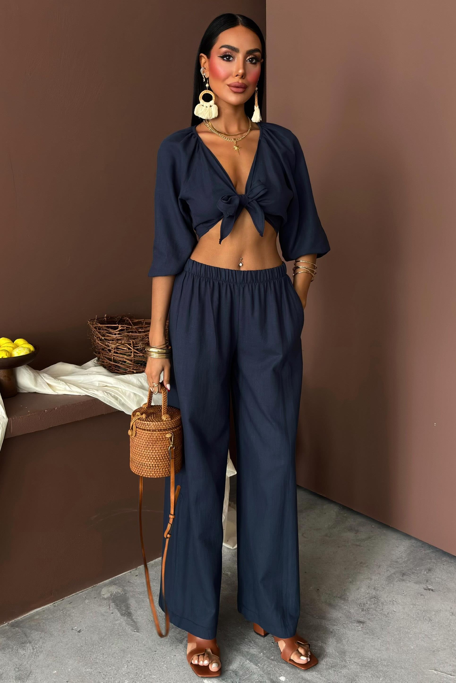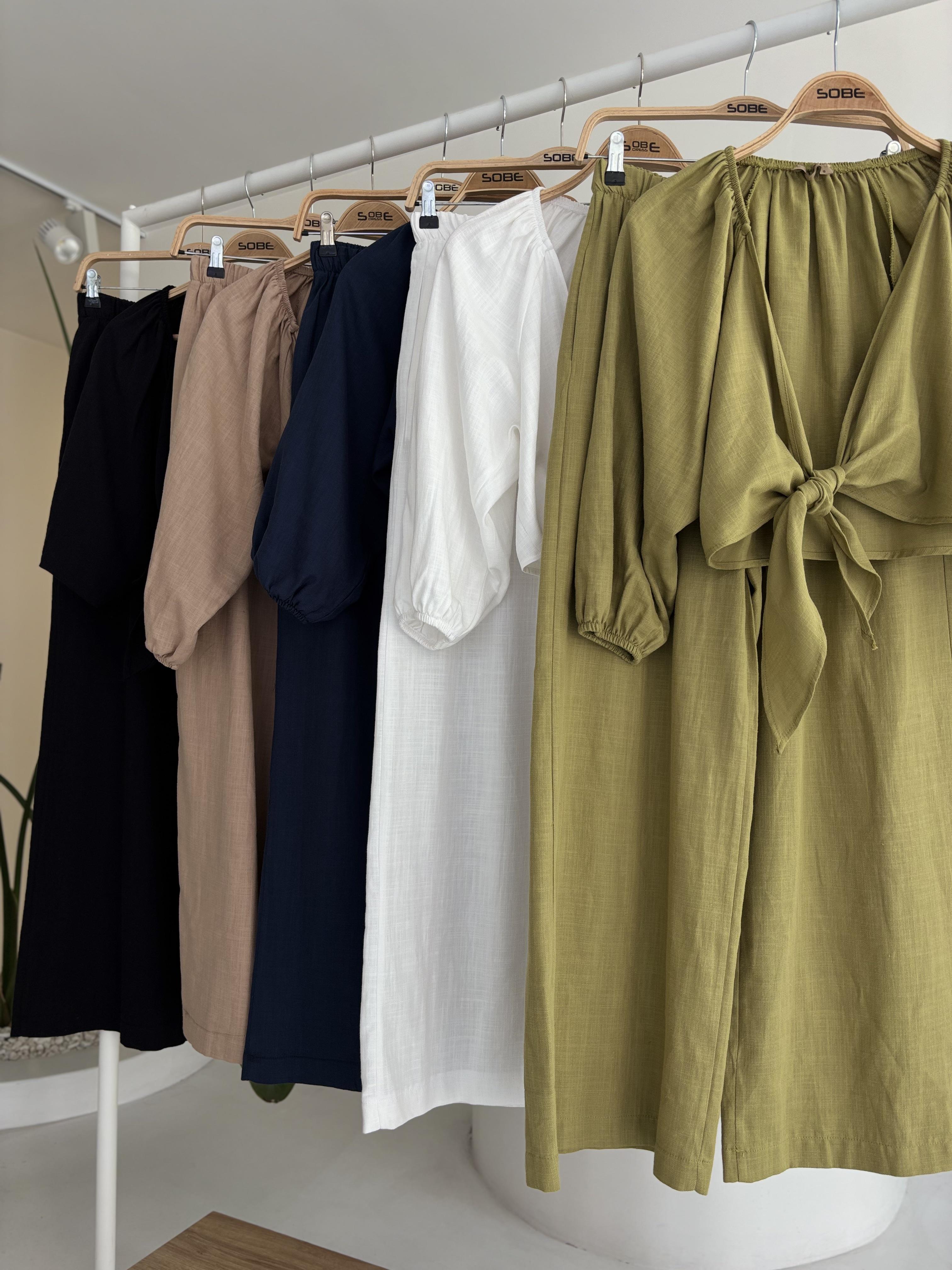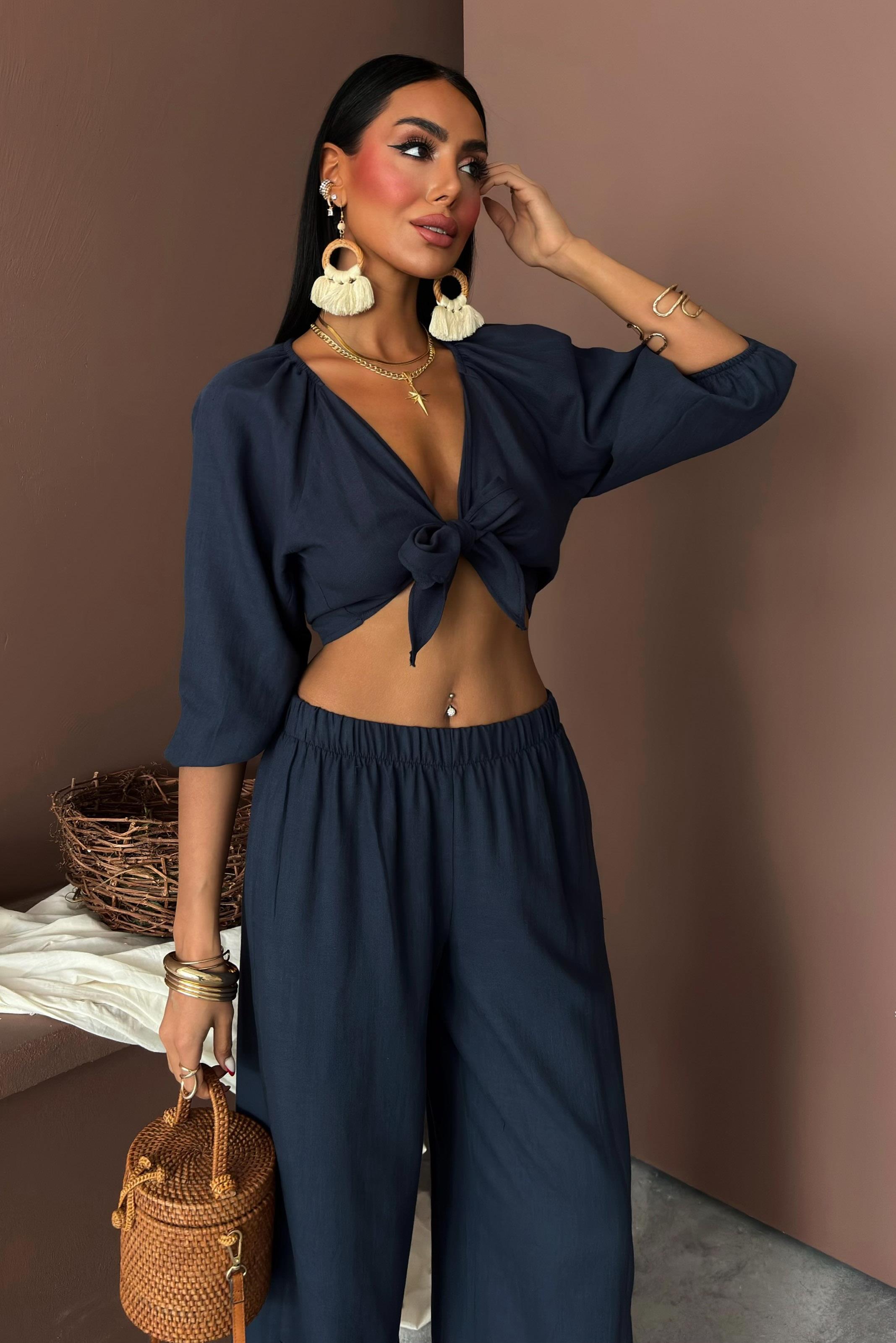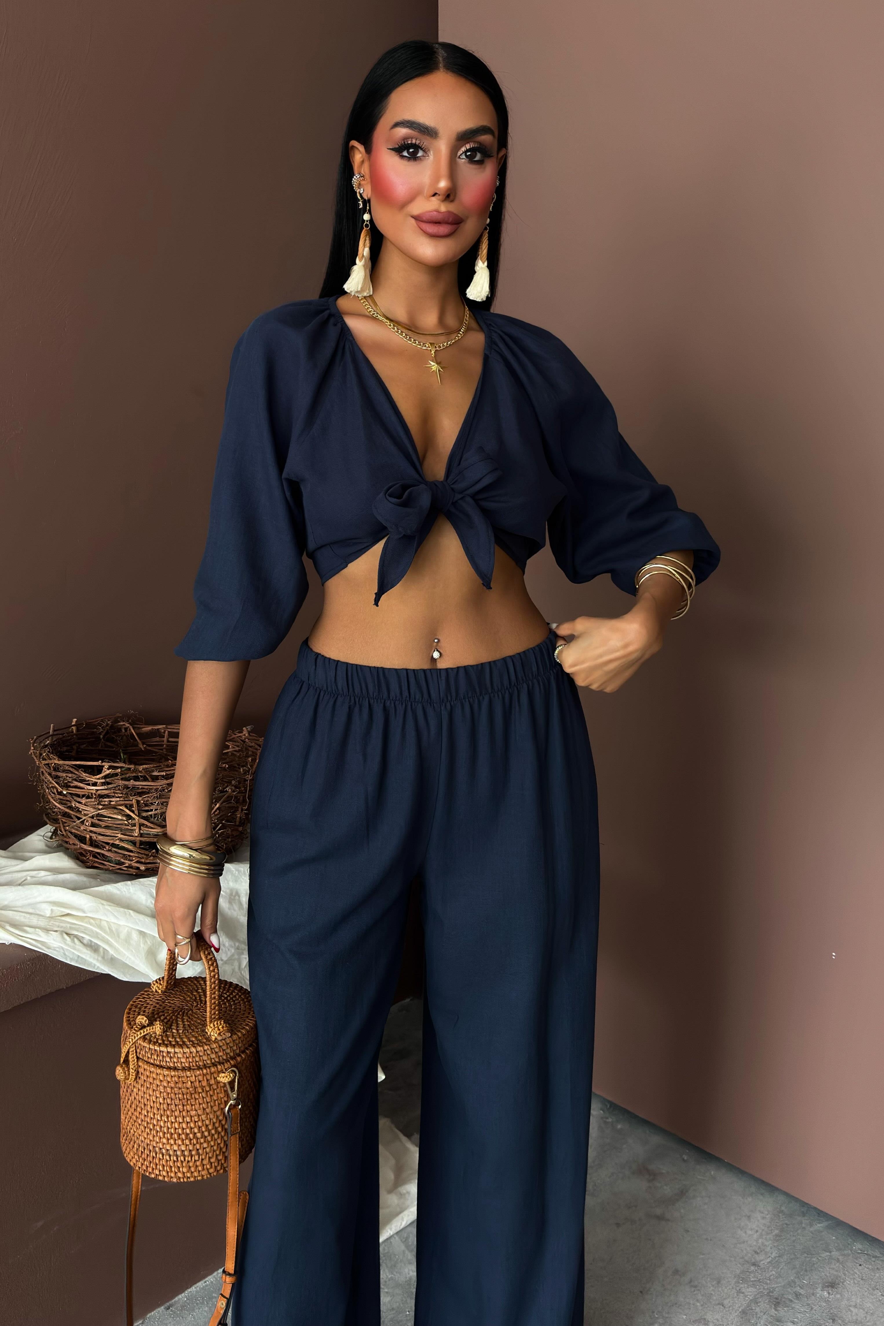 Balon Kollu ve Bağlama Detaylı Keten Takım 10182 (S5Y10182)
