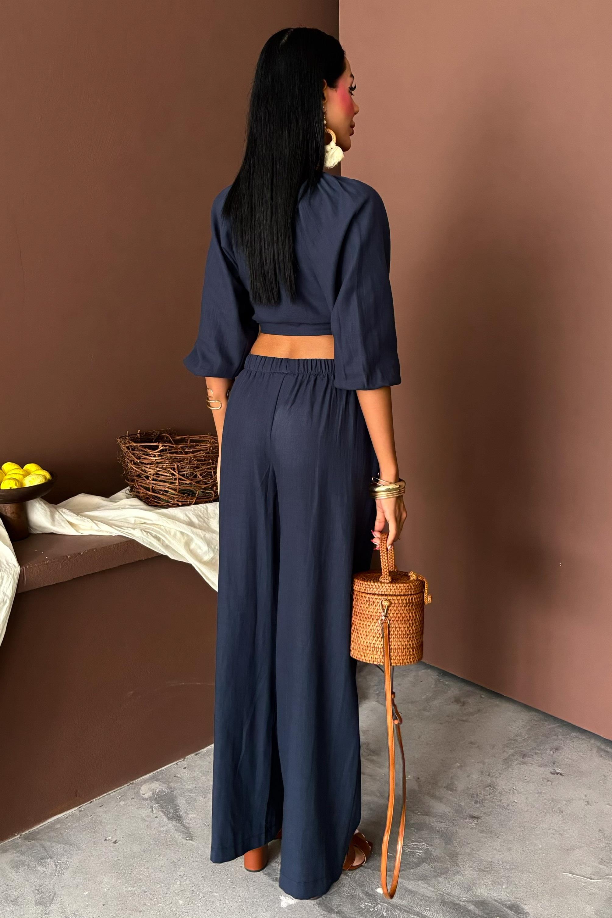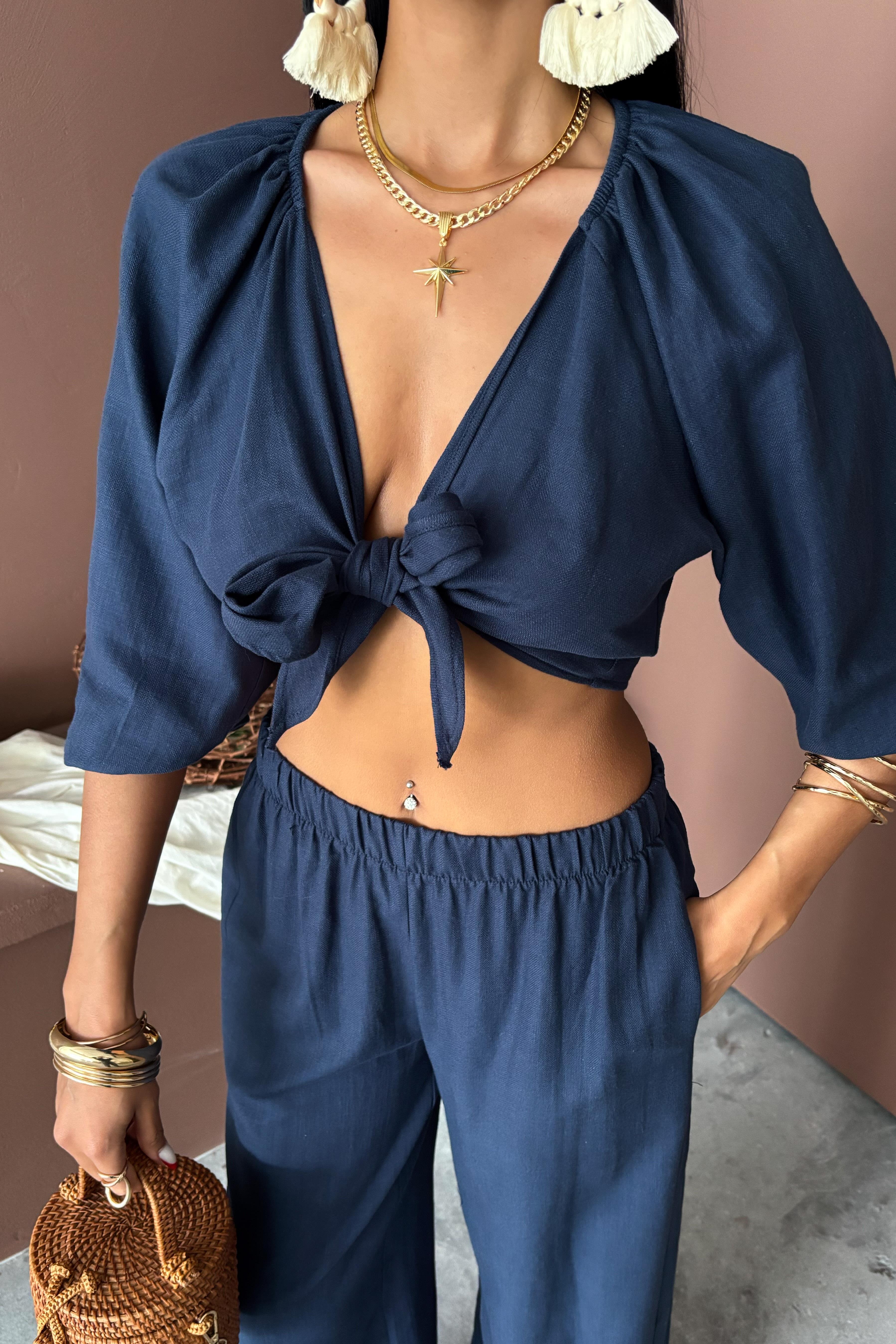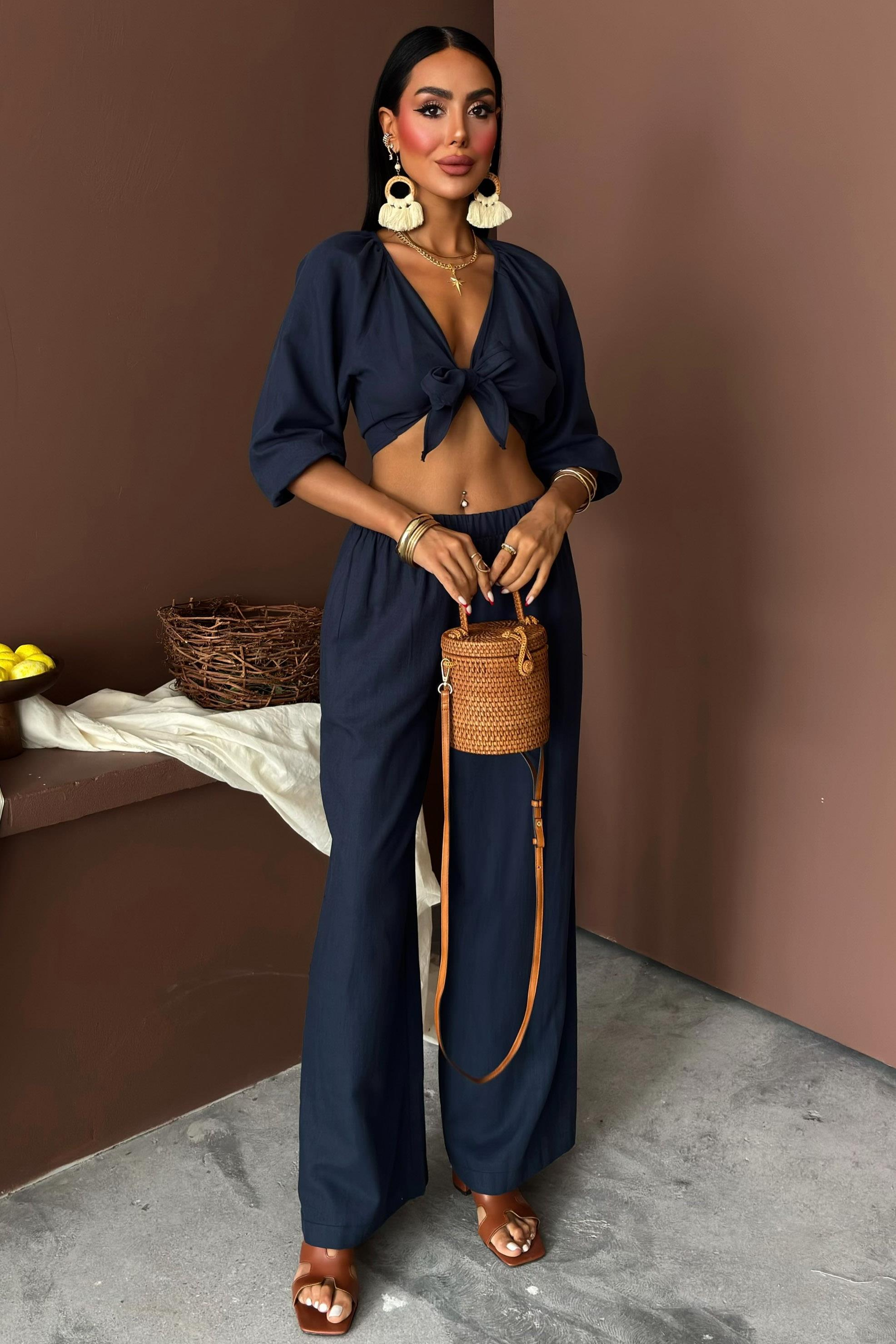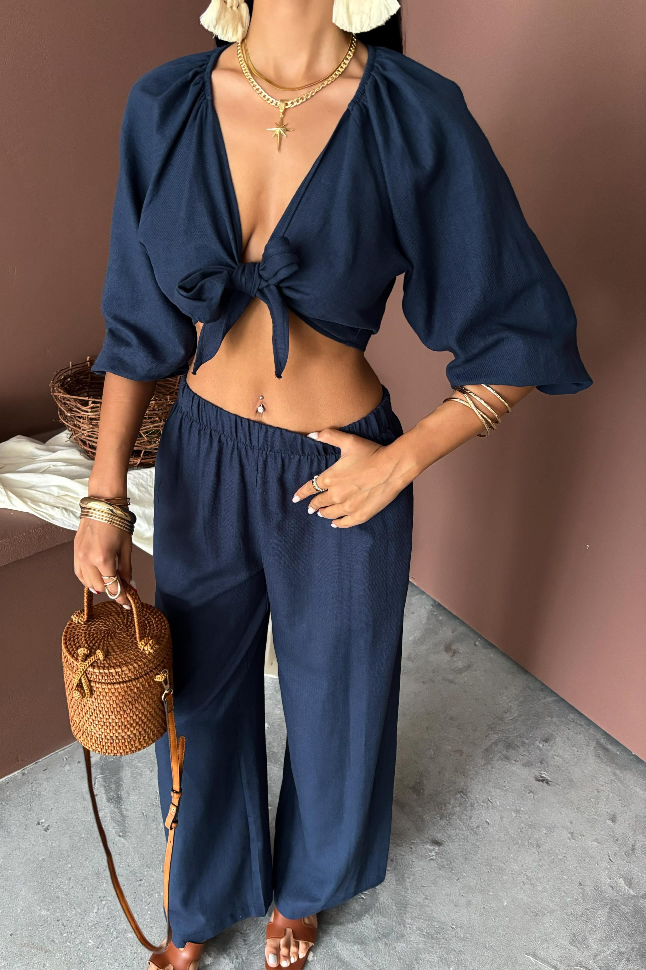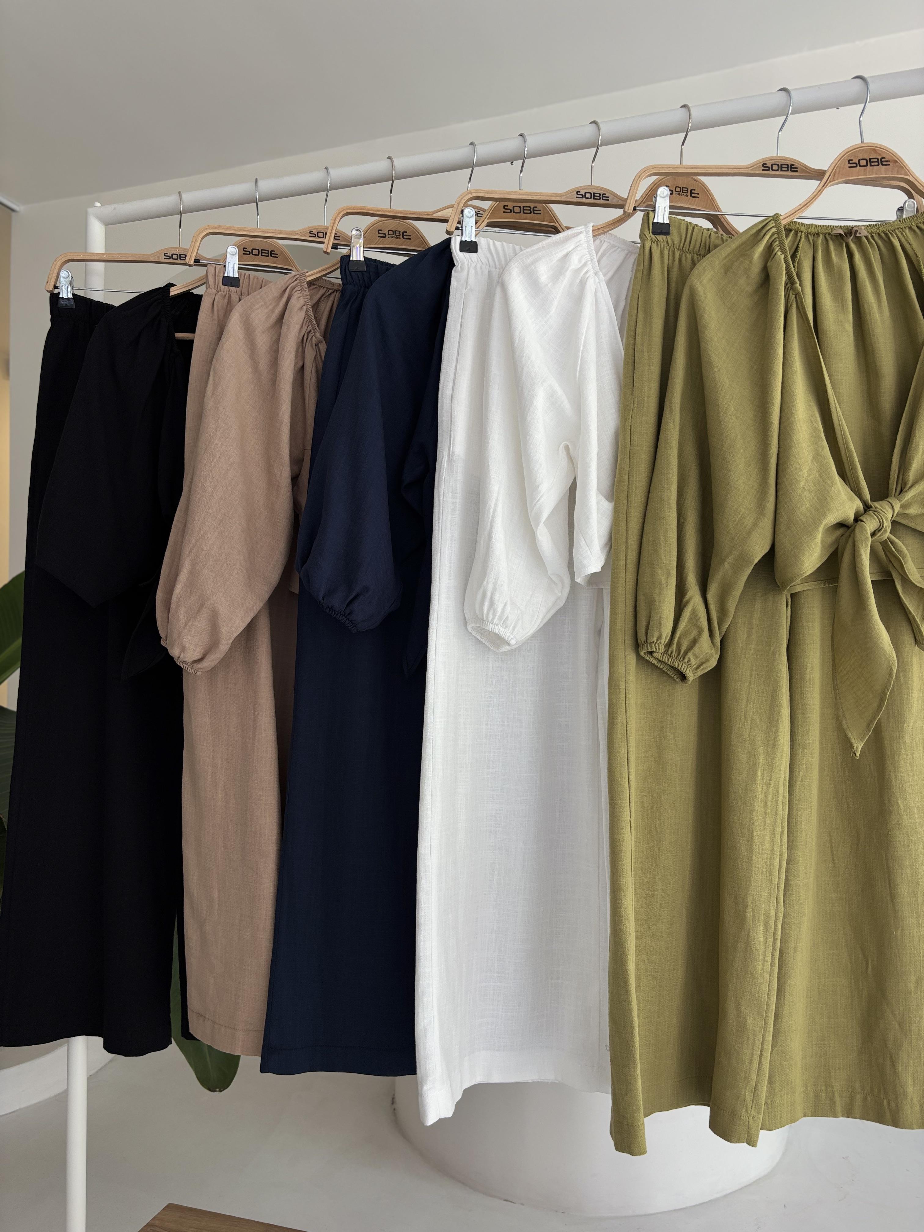 Balon Kollu ve Bağlama Detaylı Keten Takım 10182 (S5Y10182)
