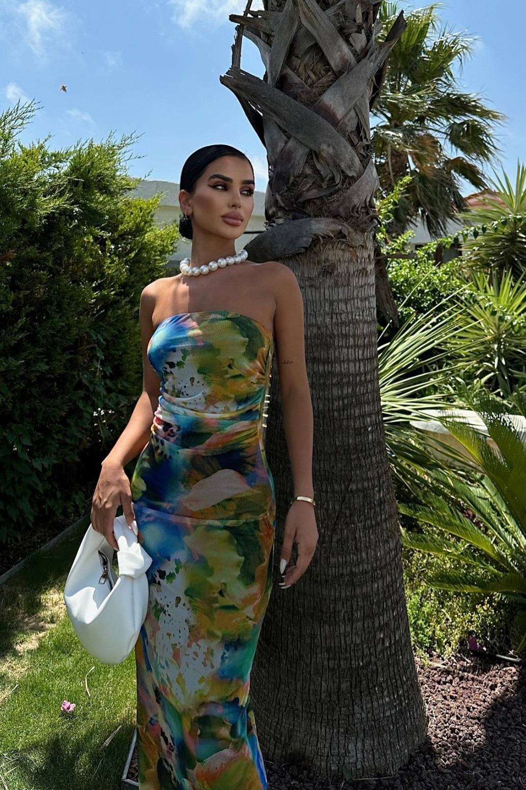 Crous Büzgülü Straplez Elbise 2579-08 (S3Y2579)