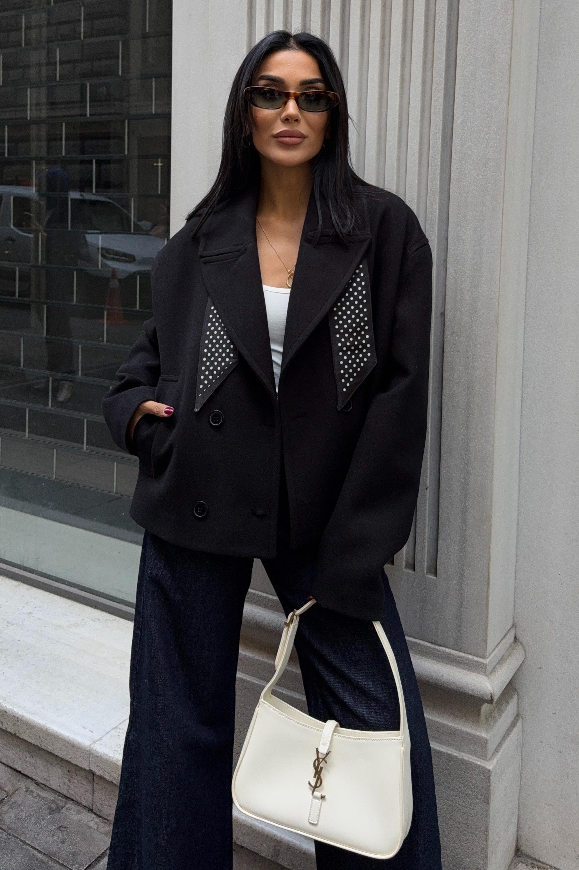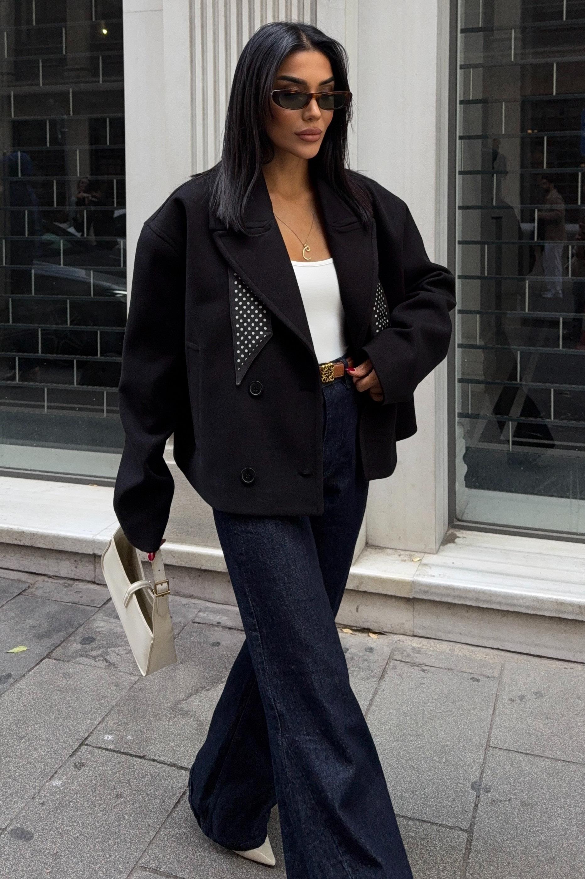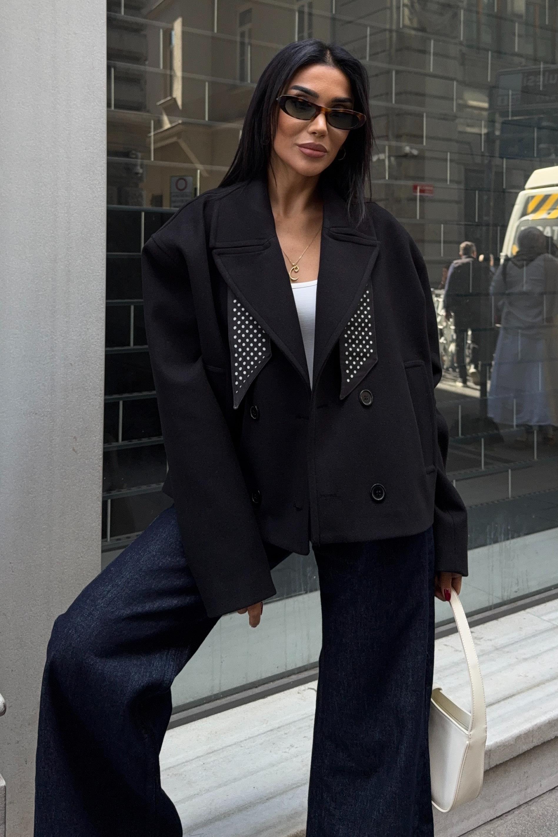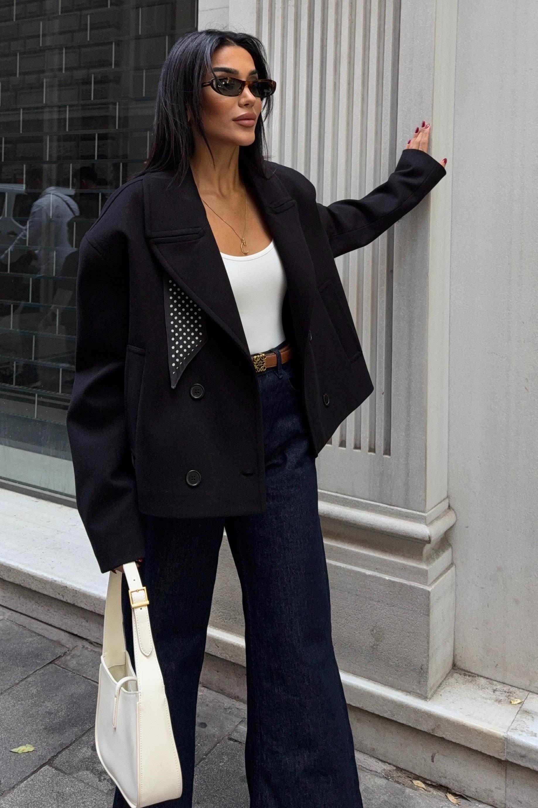 Fular Detaylı Premium Kaşe Ceket 7072 (S6K7072)