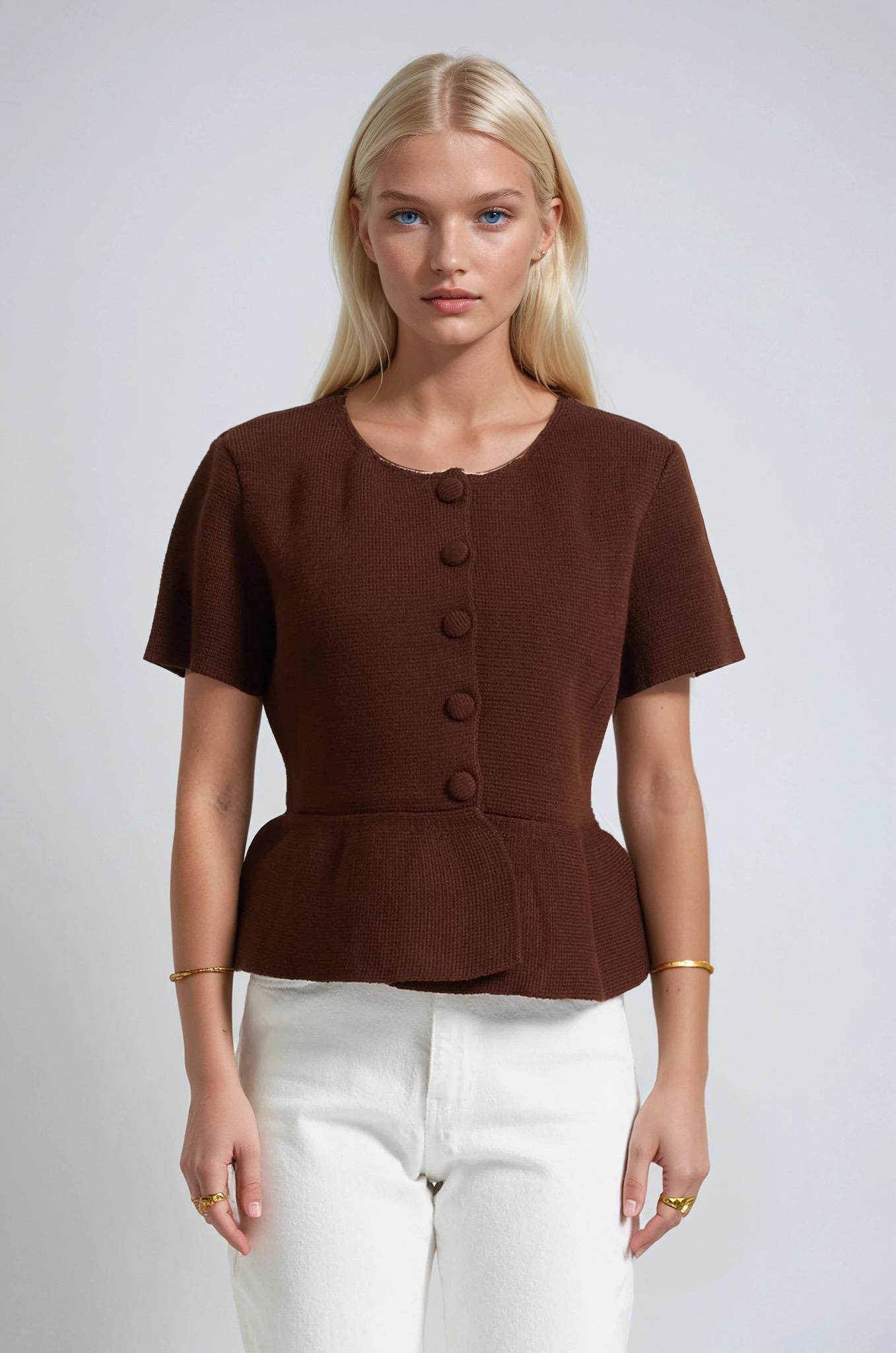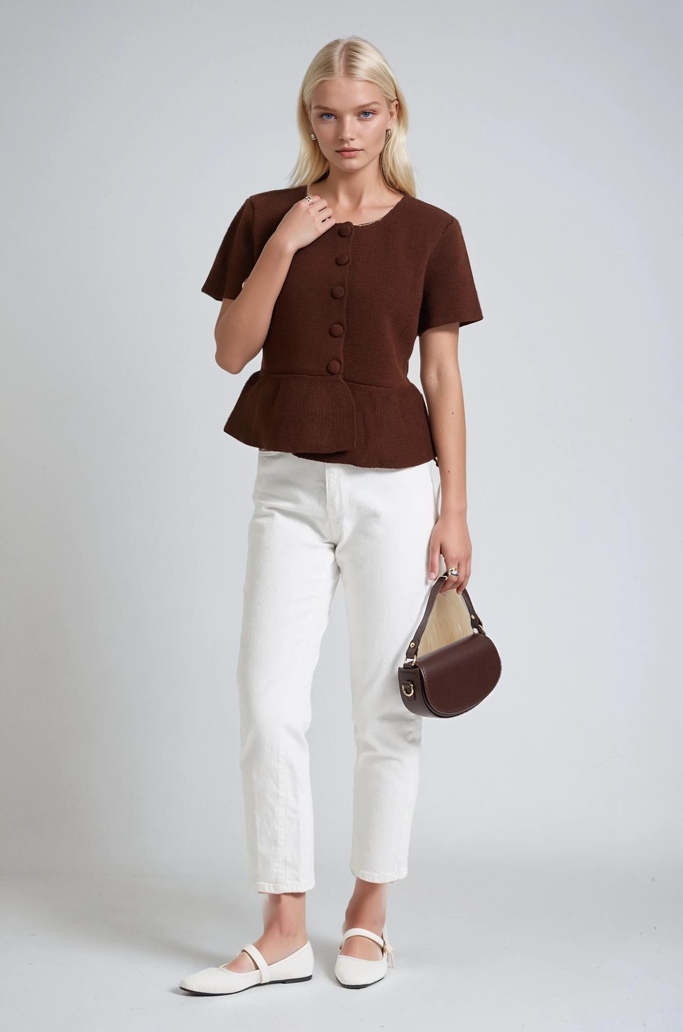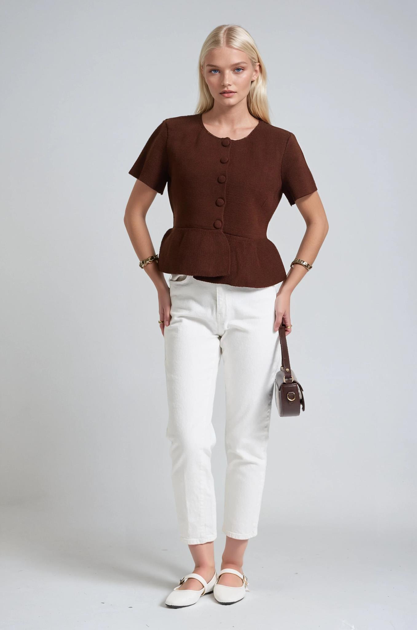 Volanlı Düğmeli Örme Hırka 5206