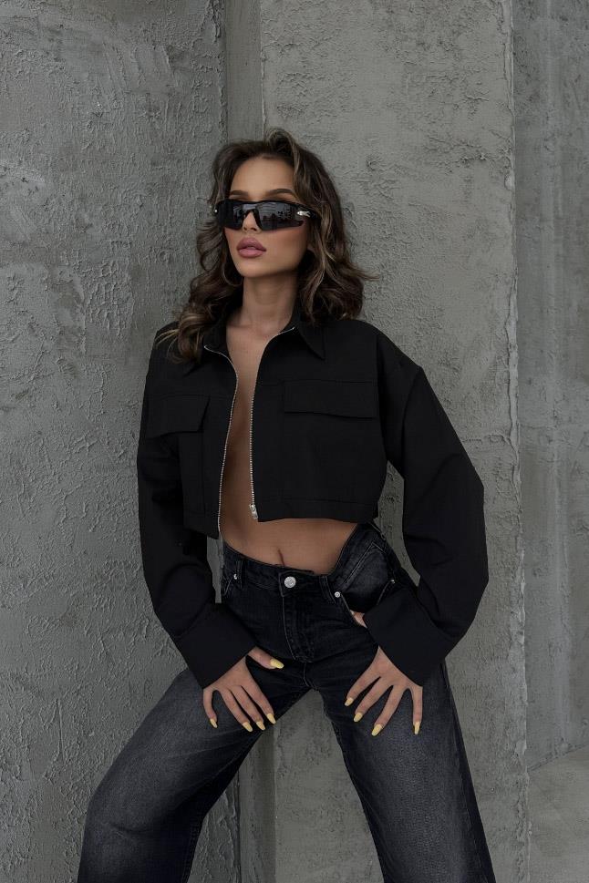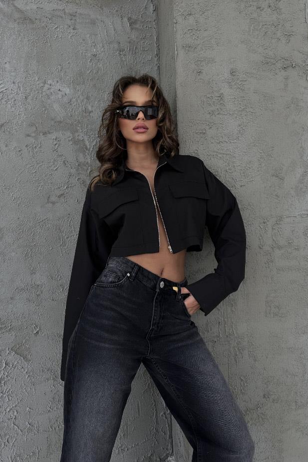 Violet Fermuarlı Crop Gömlek 3291-08 (S4Y3291)