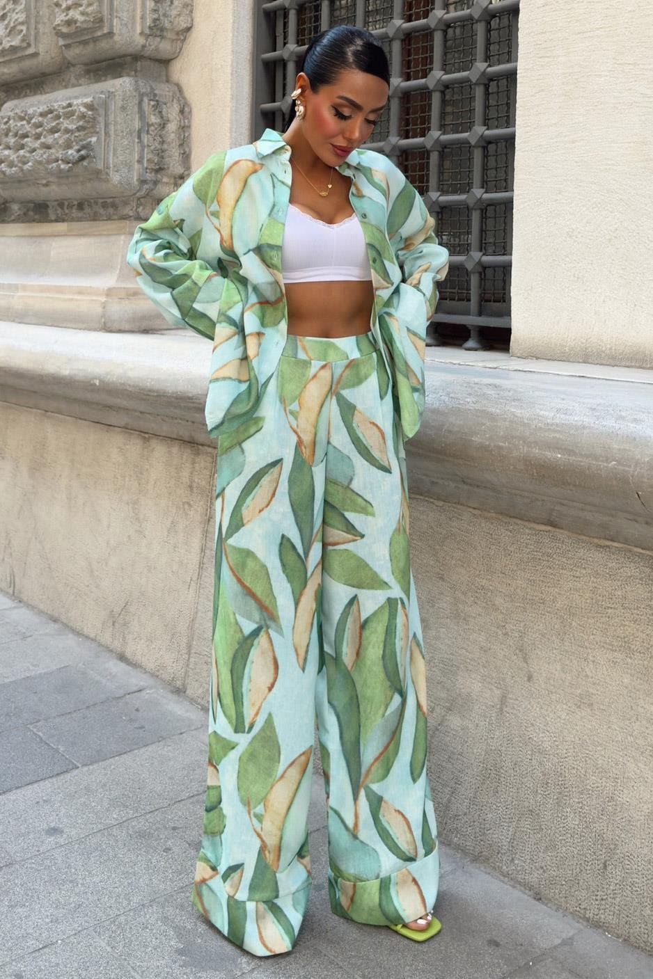 Yaprak Desenli Keten Takım 10107 (S5Y10107)